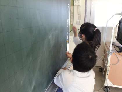 黒板もきれいに拭いていました。また、6年生と協力をして廊下をきれいに掃除していました。
