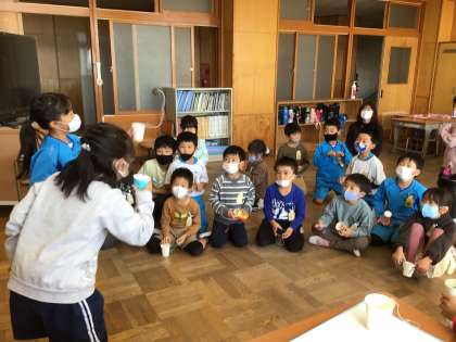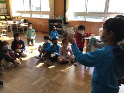 けん玉作りでは、ひもの長さをどうするのか、木の実のつけ方や種類、悩んでいました。でも、自分のとっておきができると、休み時間に練習をして大会に臨みました。