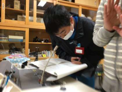 昼の校内放送の様子です。広報委員がアナウンスしています。