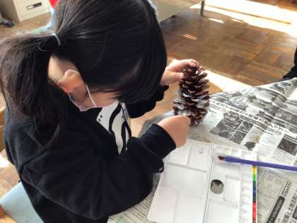 「クリスマスに雪が降ってほしいな」と言いながら、手を動かしていました。