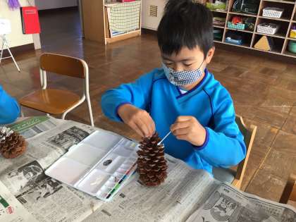 まつぼっくりツリーを作り始めました。