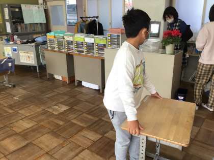 掃除の様子です。みんな元気よく机を運んでいました。