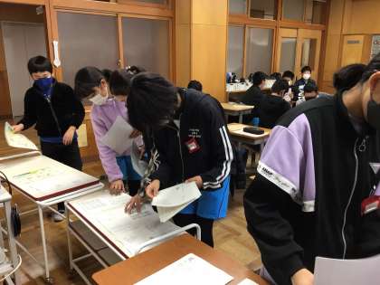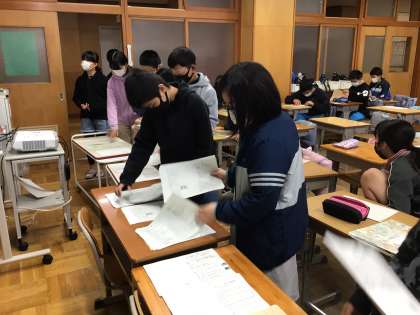 今日、修学旅行のしおりを製本しました。日程や持ちものなどの確認もしました。