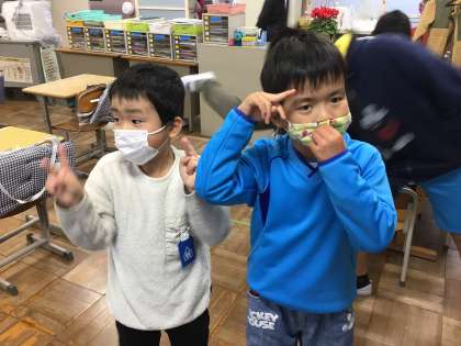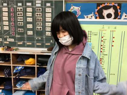 こちらの教室でも机を持ち上げて運んでいました。みんな元気がよくて明るい雰囲気の中で掃除をしていました。