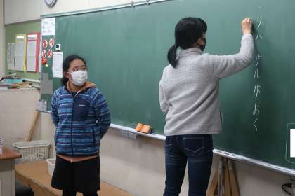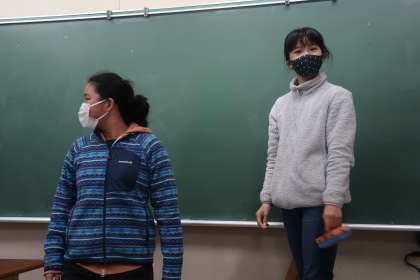 広報委員会の委員長と副委員長です。昼の校内放送の振返りの司会と板書をしていました。委員長は速い頭の回転で巧みな司会進行をしていました。また、副委員長の大きく丁寧に書かれた字は見やすかったです。素敵な2人でした。
