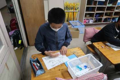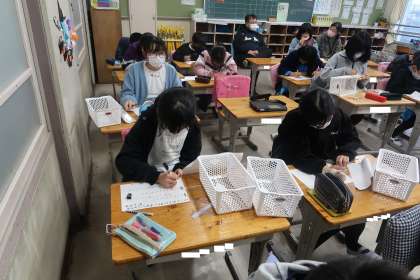 VS委員会の様子です。最初に、古くなったペットボトルキャップ回収の呼びかけポスターを新しく作り直していました。