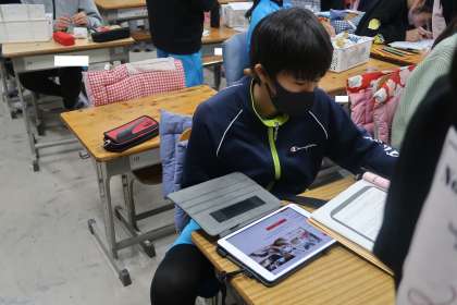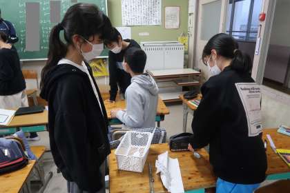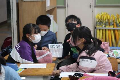 欠席した友達の担する教室のポスターを作ってくれた心優しい6年生もいました。ポスターの後は、次に行うお年玉募金の呼びかけ方法を考えていました。