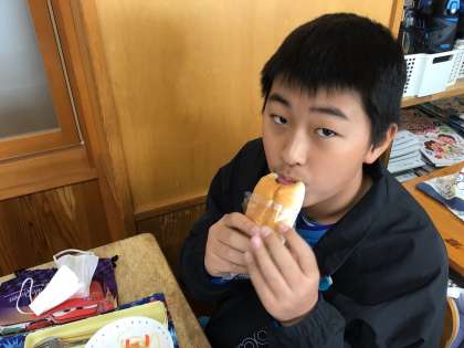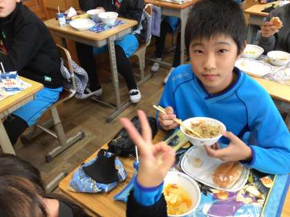 今日の給食は、米粉パン、牛乳、炒めビーフン、リンゴポンチ、エビシュウマイでした。今日も完食しました。ごちそうさまでした。