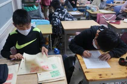保健委員会では、強調週間で使ったビンゴカードの集計を学級ごとに行っていました。