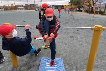 こちらは、足かけ上がりと足抜き回りの練習をしていました。