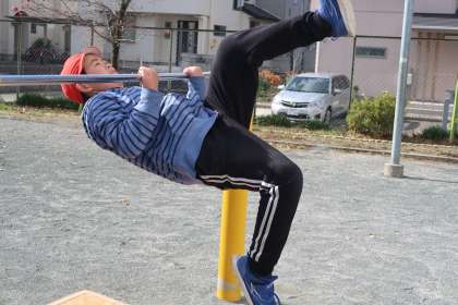 3組体育の授業です。この日が、6年生になって最初の鉄棒の授業でした。なので、逆上がりと足かけ上がりの練習をしました。