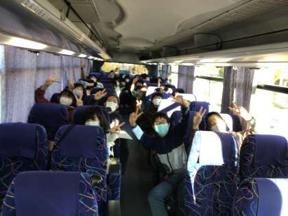二日間の修学旅行にわくわくの気持ち溢れる1号車です。