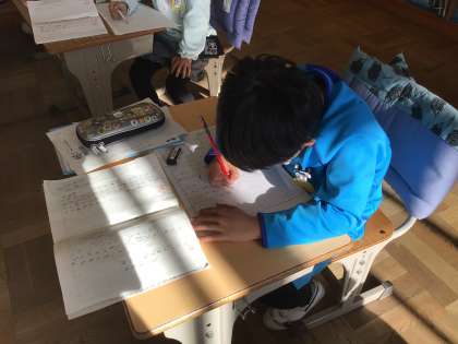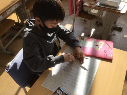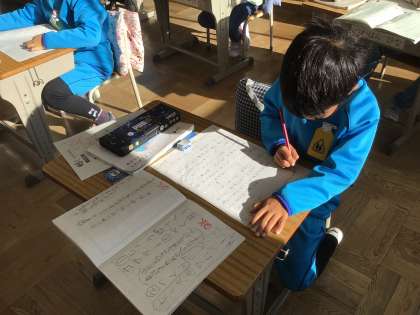 原稿用紙に書く書き方は、とっても難しくて、ノートを見ながら進めました。