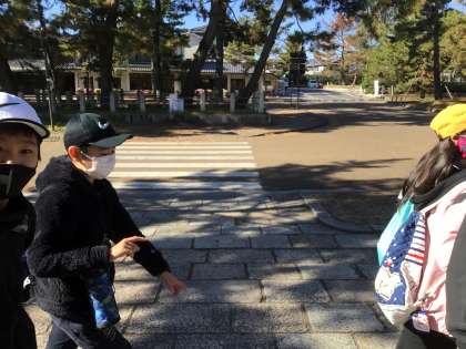 法隆寺の駐車場です。ようやく奈良県です。法隆寺に向かって歩いています。