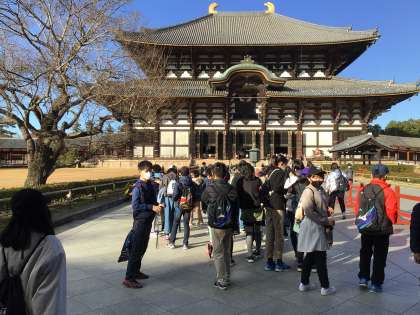 東大寺の大仏を見ました。大仏を背景にして班の集合写真を撮っている班もありました。