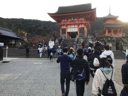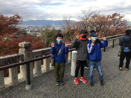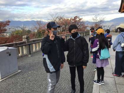 仁王門の後は、高台から京都の景色を背景に写真を撮っています。