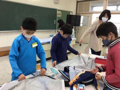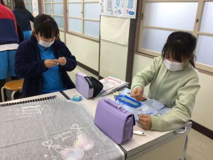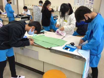 裁断、アイロンで折り目をつける、しつけ縫いを 効率よく取り組みました。