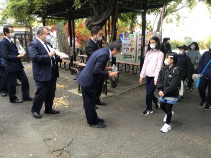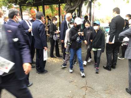 タクシーに乗って班別学習を行いました。4組から出発しました。