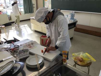 今日は、調理実習を行なっています。調理に使うフライパンは、新品だそうです。