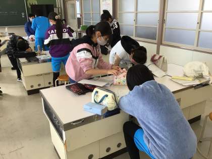 食べ終わってから食器やフライパンをきれいに洗っていました。その後、授業の振り返りを書いていました。