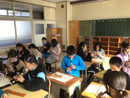 そのにこにこ交流では、リコーダーで演奏する子とダンスをする子で分かれます。ダンスの練習は明日行います。