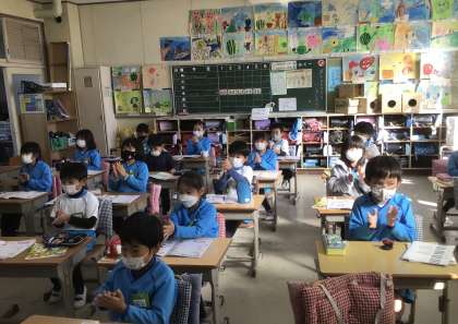「トルコ行進曲」に合うリズムを考え、曲に合わせて手拍子を打ちました。
