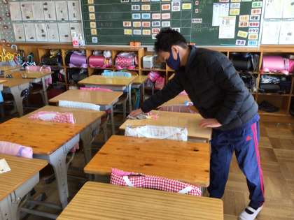 教室の掃除です。この日は、欠席・早退者が6名おり、少ない人数ながら協力して掃除をしました。