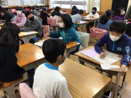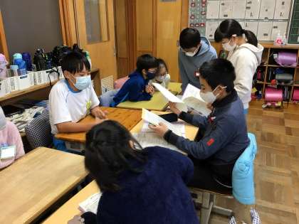 本日の0限は、わくわく遊びについて5年生と打ち合わせを行いました。1・2・3年班は、6年生の教室で、4・5・6年班は、5年生の教室に移動して行いました。