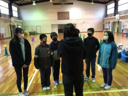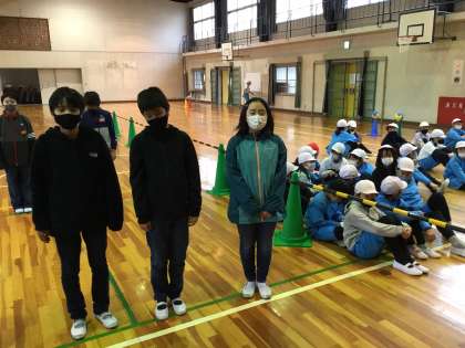 昼放課です。各学級の学級書記が明日のにこにこ交流の練習をしていました。彼らは、笑顔で楽しい雰囲気を出しながら台詞を言えるように練習しました。