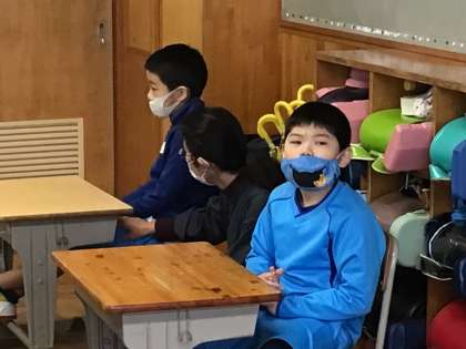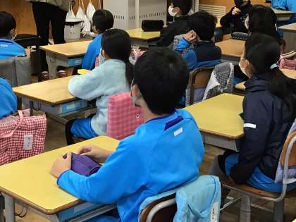 明るい朗読により、冷たい雨の中登校してきた子供たちの心が温まりました。