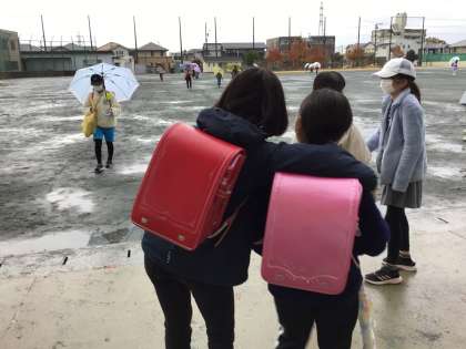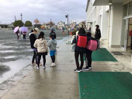 今日は、雨の中の登校でした。雨天でも元気よく挨拶をしていました。