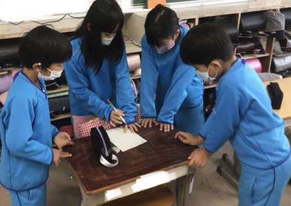 今日は雨で外に出られないので、教室で各班ごとにひょうげん運動についての話し合いを行いました。