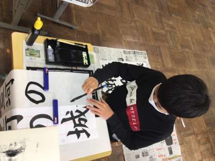 書き初めの練習をしました。 習字の先生に「みんな上手だね」と、褒められました!