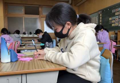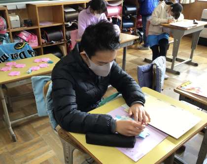 メッセージを同じ班の子に一人一人心を込めて書いていました。