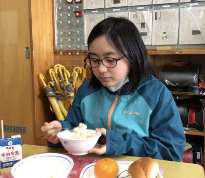 昨日の給食の様子です。メニューは、ツイストパン、牛乳、マカロニのクリーム煮、ブロッコリーサラダ、みかんでした。1番人気は、マカロニのクリーム煮でした。みかんも好評でした。完食していました。