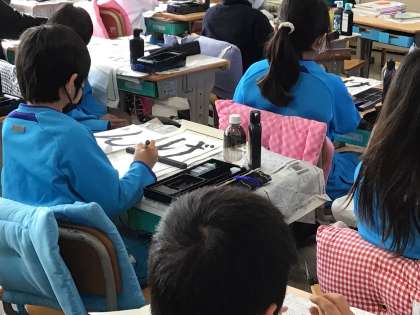 書き初めの練習が続いています。伸びやかな字が書けています。