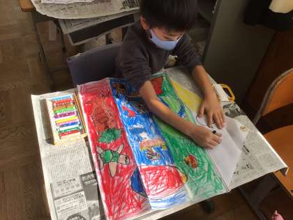 明日は、凧揚げです。どんな凧ができあがるかな?