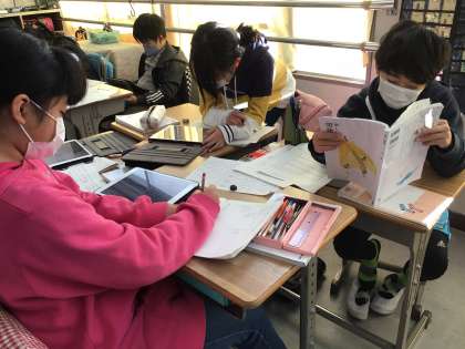 和の文化について調べ始めました。 本やiPadを使ってまとめています。