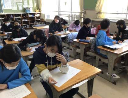 今日の委員会の様子です。今年の振り返りをした後に、お年玉募金の呼びかけの内容を考えていました。
