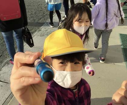 本日の朝の様子です。1年生は、元気よく走り回っています。タッチペンを見せてくれました。