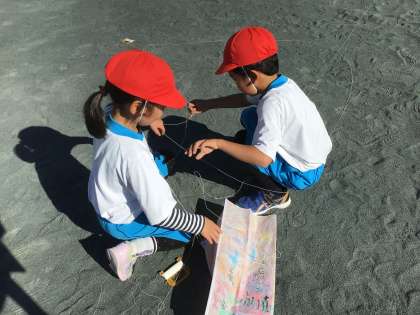 凧揚げやってみました!もう、からまってしまいました。さて、どうするかな?