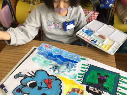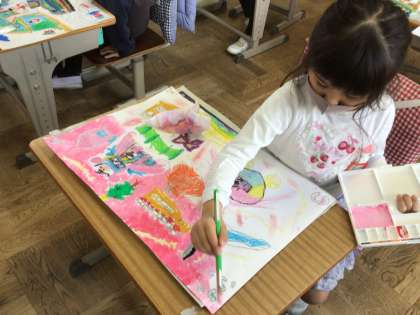 絵の具を使って、作品を仕上げています。
