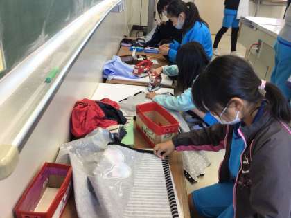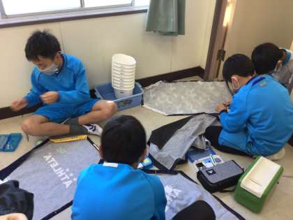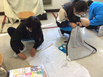 楽しくエプロン作りをしています。