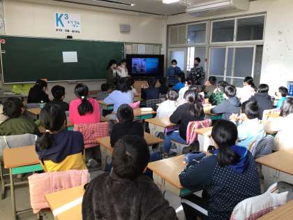 0時間目に、6年生が総合の調べ学習の発表をしにきてくれました。