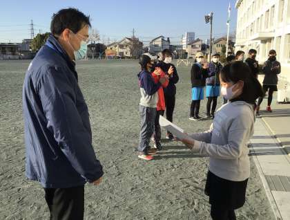昨日の朝の様子です。この日も元気よくあいさつをしていました。また、ボランティアを100日間続けた6年生が表彰されていました。