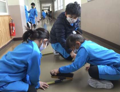 掃除中にホウキに絡まったホコリをとっていました。また、掃除が終わると元気よく過ごしていました。