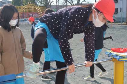 この日の体育は鉄棒を行いました。久しぶりの授業でしたが元気よく1つ1つの技を練習していました。