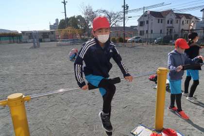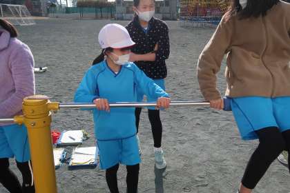鉄棒検定カードに、できた技の欄に○を記入しながら練習しました。