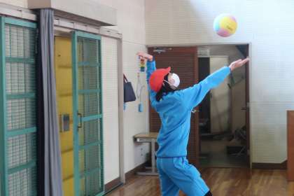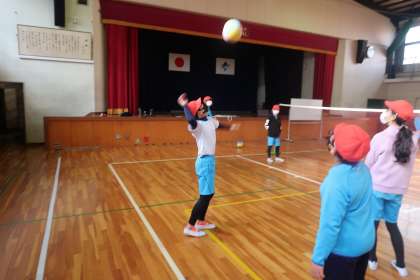 4組の体育の授業です。この日は、ソフトバレーボールを行いました。バレーボール経験者のサーブは速かったです。
