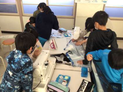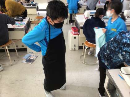 エプロン作りも仕上げです! 上手にできたかな?